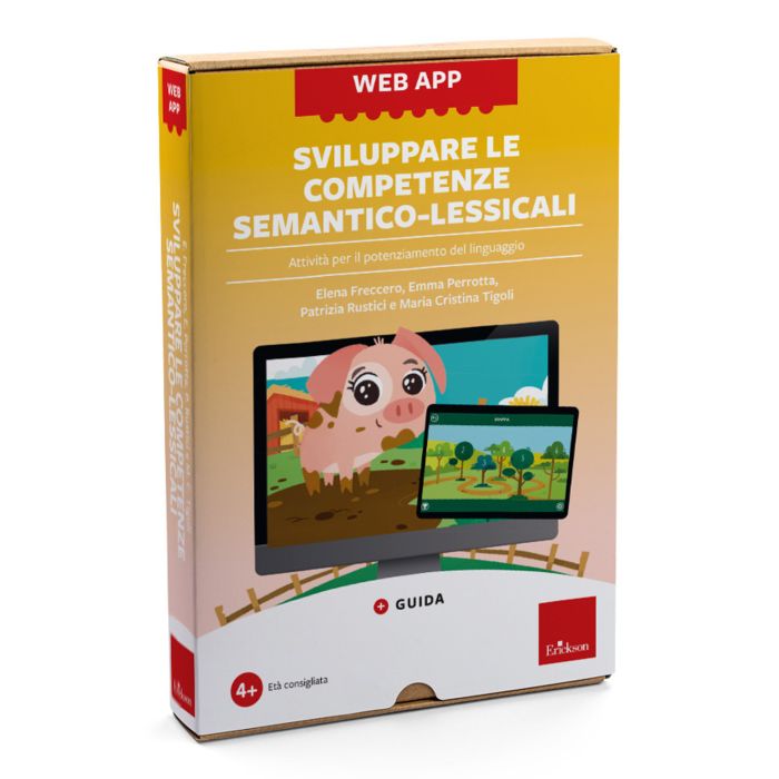 La competenza semantico-lessicale è alla base delle successive acquisizioni linguistiche e parte integrante del processo di crescita cognitiva. Pensata per bambine e bambini dai 4 anni di età, Sviluppare le competenze semantico-lessicali propone un percorso graduato e metodico per arricchire il vocabolario, ed è un utile strumento in ambito didattico nei primi anni della Scuola Primaria, ma anche in ambito riabilitativo. La web app ha lo scopo di allenare, in un contesto giocoso e altamente stimolante, le capacità di categorizzazione, riflessione sul significato e recupero lessicale, attraverso 11 diverse attività, tra cui: raggruppamenti per area semantica, giochi logici di completamento di serie, individuazione dell'intruso e ricerca di contrari, sinonimi e omonimi, denominazione di immagini, stimolazione di strategie di recupero lessicale e 13 racconti a cloze. Una sezione finale di 4 giochi sfidanti aiuta a rinforzare le conoscenze e competenze apprese e allenate. La guida cartacea introduce, nello specifico, al training delle capacità di categorizzazione e rievocazione lessicale, nonché alla riflessione sui significati delle parole. Oltre alla guida alla navigazione, sono presenti numerose schede operative.