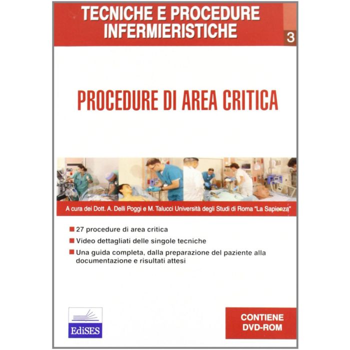 | Indice | Volume + DVD - 27 procedure di area critica - Video dettagliati delle singole tecniche - Una guida completa, dalla preparazione del paziente alla documentazione e risultati attesi Gestione delle crisi - Triage - Esecuzione e gestione del codice colore - Controllo del carrello di emergenza |