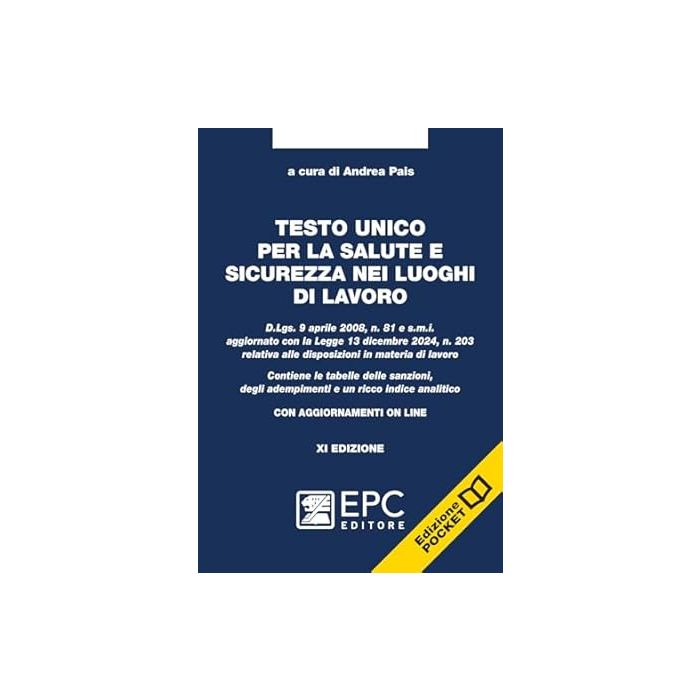 Testo unico per la salute e sicurezza nei luoghi di lavoro. D.Lgs. 9 aprile 2008, n. 81 e s.m.i. aggiornato con la Legge 13 dicembre 2024, n. 203. Contiene le tabelle delle sanzioni, degli adempimenti (Pais Andrea - EPC)