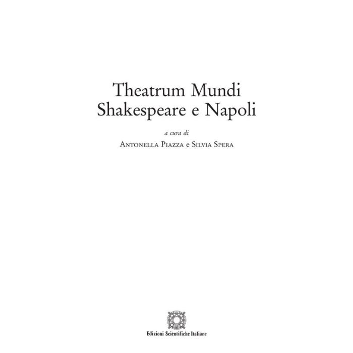 Per mancanza di traduzioni Shakespeare non ha immediatamente influenzato la cultura napoletana (e quella italiana) come è accaduto per altre aree europee. Tuttavia, c'è chi ritiene, forse non in modo azzardato, che esista tra le tradizioni drammatiche di Shakespeare e di Napoli un'attrazione ancora poco indagata, come già lamentava nel 1919 Benedetto Croce in un suo famoso saggio. Theatrum Mundi. Shakespeare e Napoli intende esplorare la relazione culturale e linguistica tra Shakespeare e Napoli. Entrambe le letterature teatrali condividono la capacità di coniugare la tradizione colta con la cultura popolare, di riflettere sia una prospettiva locale che una internazionale e dunque di attrarre un pubblico inclusivo di ogni strato sociale. Non è dunque forse un caso che in Italia è nei teatri di Napoli, più e prima che in quelli delle regioni del Nord, che Shakespeare venne accolto con entusiasmo già dal primo Ottocento. La straordinaria e vivissima energia linguistica del testo shakespeariano, inoltre, sembra rivelarsi, come dimostrano i saggi della raccolta, nelle traduzioni e negli adattamenti contemporanei di Shakespeare in napoletano, a partire dal teatro sperimentale degli anni Settanta e Ottanta, alla geniale traduzione de La tempesta di Eduardo De Filippo fino a prove contemporanee come l'ultimo Amleto di Davide Iodice.