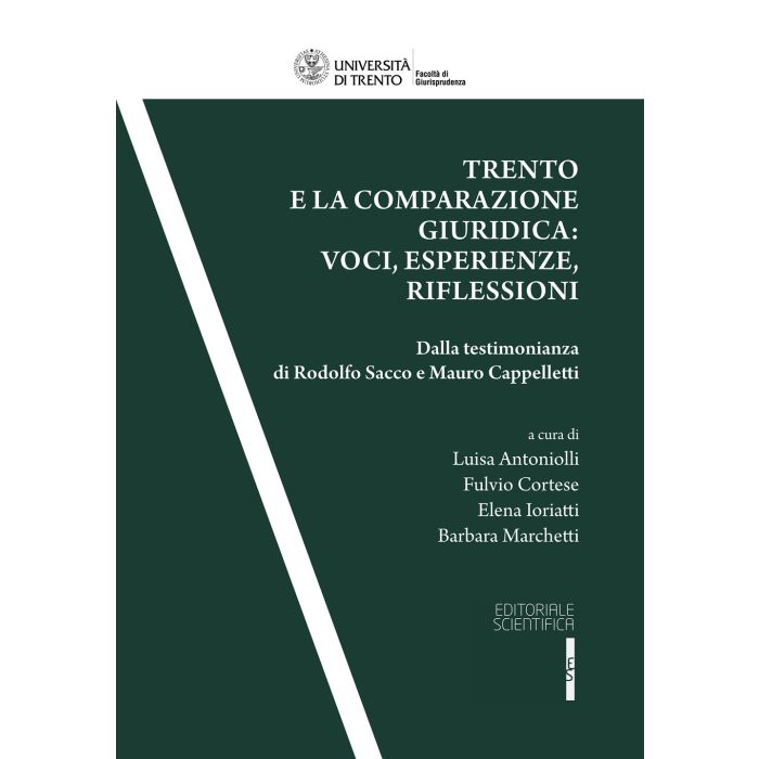 Il volume pubblica gli atti del convegno "Trento e la comparazione giuridica: voci, esperienze, riflessioni: dalla testimonianza di Rodolfo Sacco e Mauro Cappelletti", organizzato dalla Facoltà di Giurisprudenza di Trento il 22 e il 23 settembre 2022. L'analisi ha preso le mosse dal ruolo e dal magistero di due autorevoli Maestri della scienza giuridica comparatistica: Rodolfo Sacco (1923-2022) e Mauro Cappelletti (1927-2004). Nella prima parte del volume, in occasione dell'intitolazione dell'Aula Magna della Facoltà di Giurisprudenza di Trento a Rodolfo Sacco, viene ricordato il fondamentale contributo del Maestro al diritto comparato contemporaneo, in Italia e all'estero, e il suo ruolo quale Presidente del Comitato Ordinatore della Facoltà al momento della sua fondazione.
