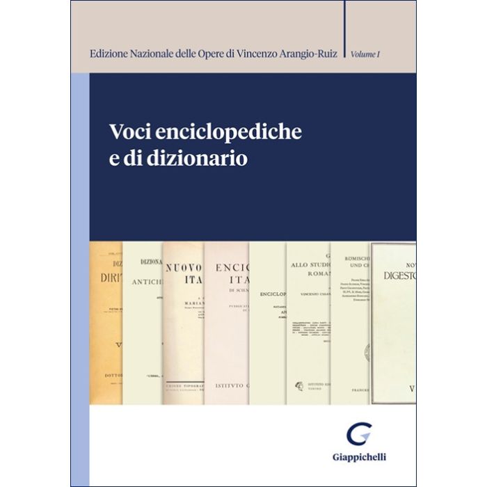 Il presente volume è il primo dell'Edizione Nazionale delle opere di Vincenzo Arangio-Ruiz, istituita con Decreto del Ministro della Cultura n. 77 del 27 febbraio 2024. Esso raccoglie in un'unica sede tutte le voci enciclopediche e di dizionario dell'Autore su temi che spaziano dal diritto privato al diritto pubblico e contemplano anche numerose biografie di giuristi antichi e moderni.