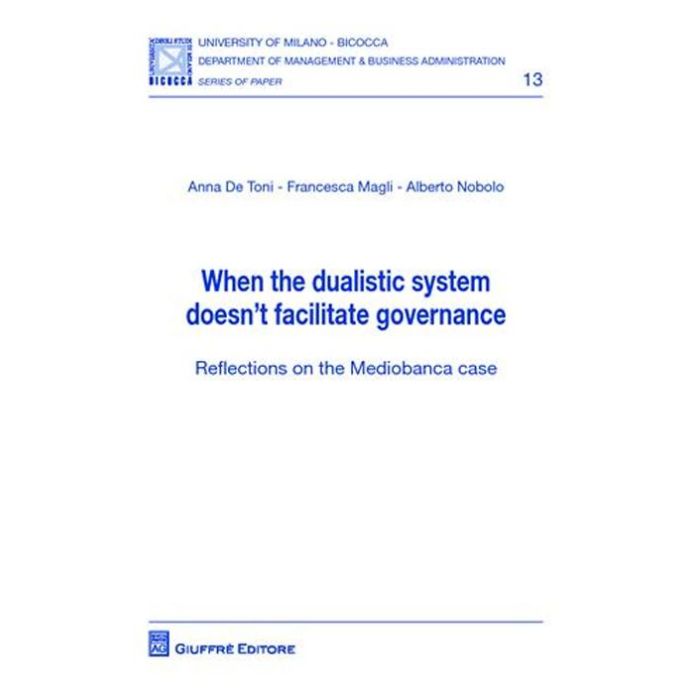 When the dualistic system doesn't facilitate governance. Reflections on the Mediobanca case